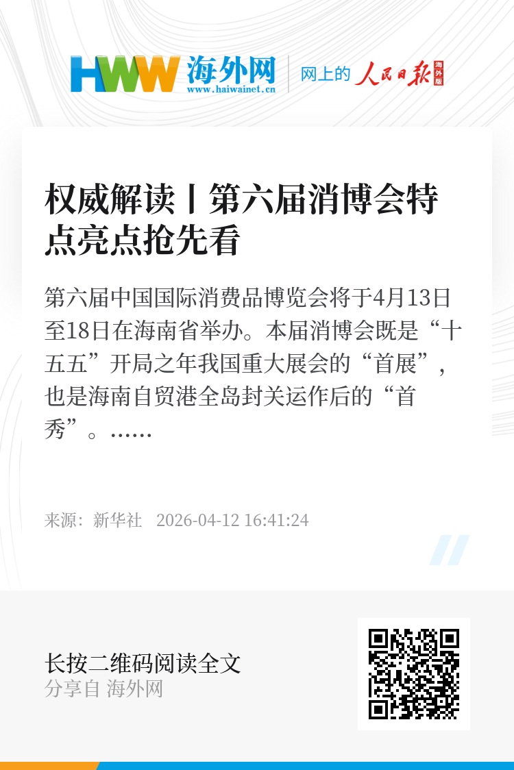 第六届中国国际消费品博览会将于4月13日至18日在海南省举办。本届消博会既是“十五五”开局之年我国重大展会的“首展”,也是海南自贸港全岛封关运作后的“首秀”。目前,各展区筹备工作已全面就绪。