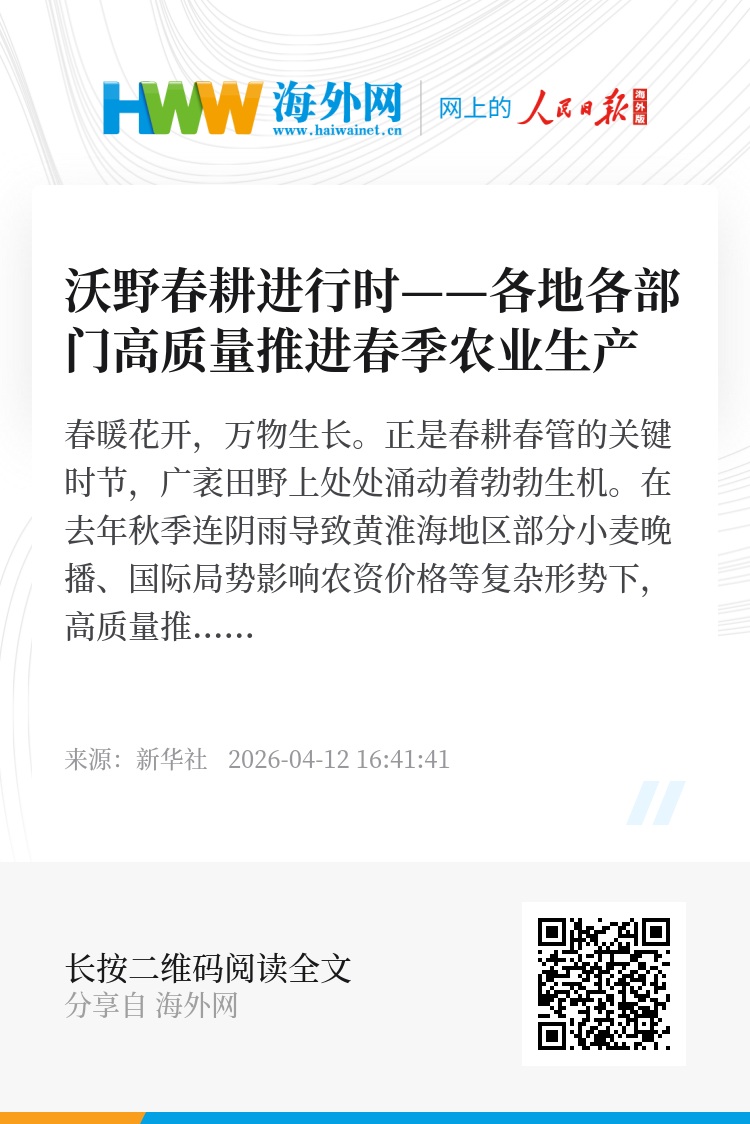 在去年秋季连阴雨导致黄淮海地区部分小麦晚播、国际局势影响农资价格等复杂形势下,高质量推进春季农业生产关乎“十五五”开局之年“粮袋子”安全。记者近日深入广西、河南、河北、辽宁等地调研了解到,这个春天,各地各部门抢抓农时促生产,用科技护航春耕春管,一幅幅农忙新图景正从南到北有序铺展。