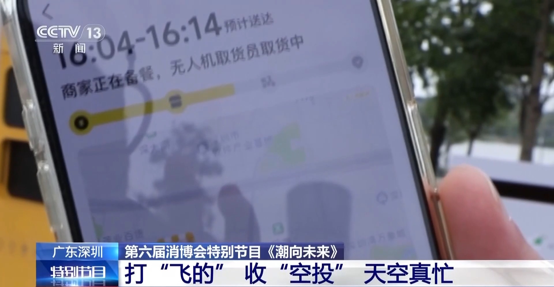 总台记者 何俊儒:下单完成之后,就会跳转到无人机专送界面,大概三十分钟左右就可以完成。