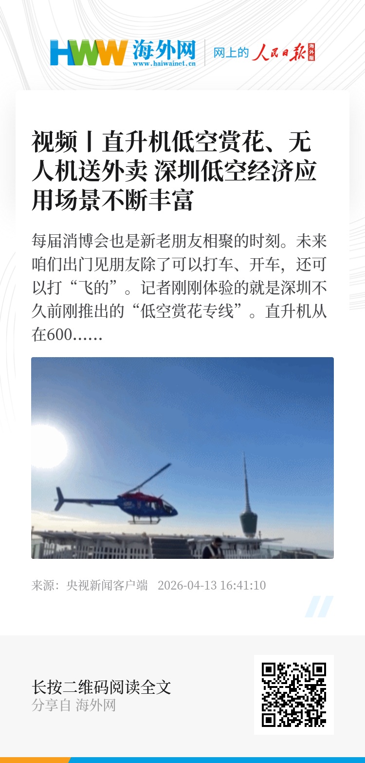 不仅有直升机低空赏花、无人机配送外卖,在深圳,低空经济已经具有了丰富的应用场景。在大鹏新区,无人机已经开始常态化巡查海岸线,精准锁定海上险情和勘测海岸线环境问题。在南山区,无人机已经开始在医院与血站之间运送血液。在坪山区,无人机交通巡查岗“上空工作”全程仅用6分钟便可完成拍照取证和事故现场勘察。