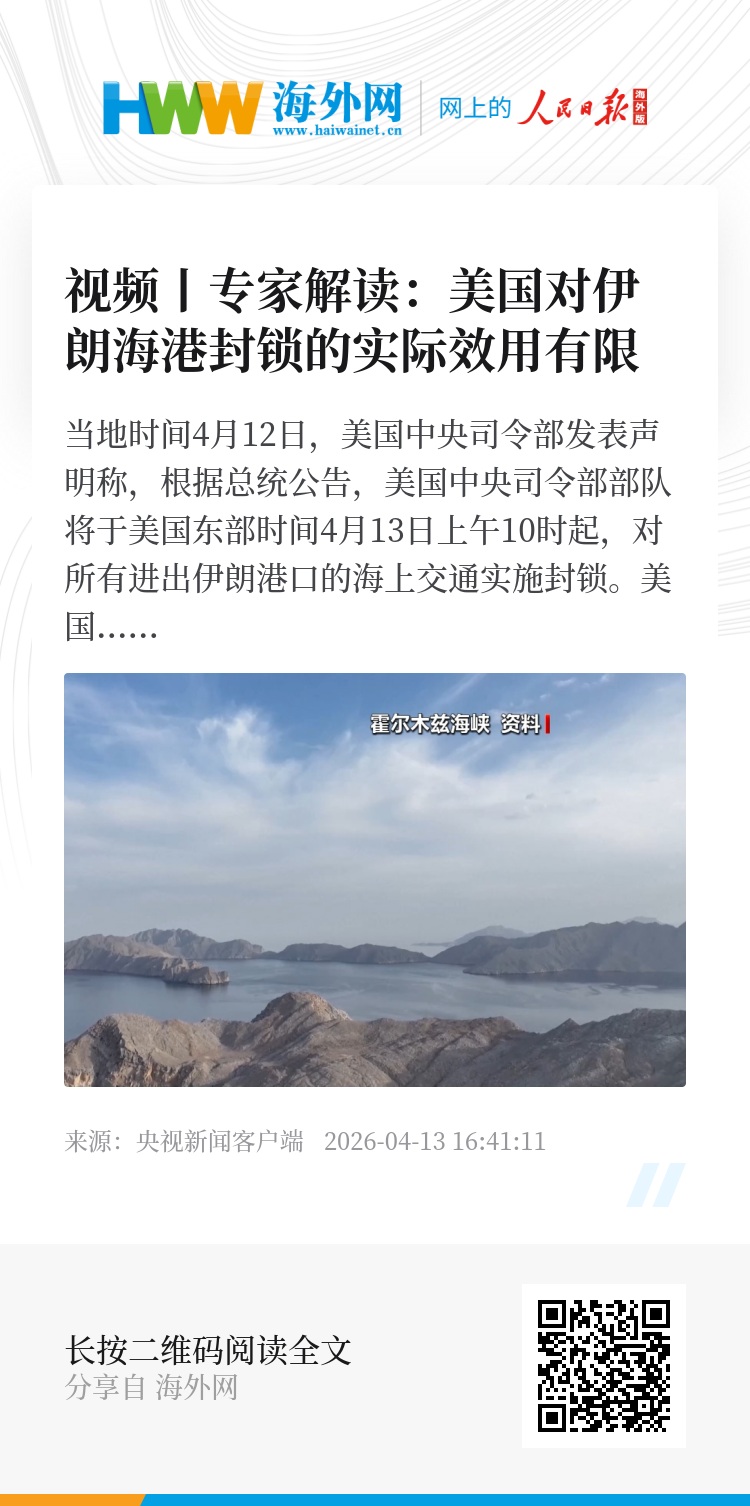 当地时间4月12日,美国中央司令部发表声明称,根据总统公告,美国中央司令部部队将于美国东部时间4月13日上午10时起,对所有进出伊朗港口的海上交通实施封锁。