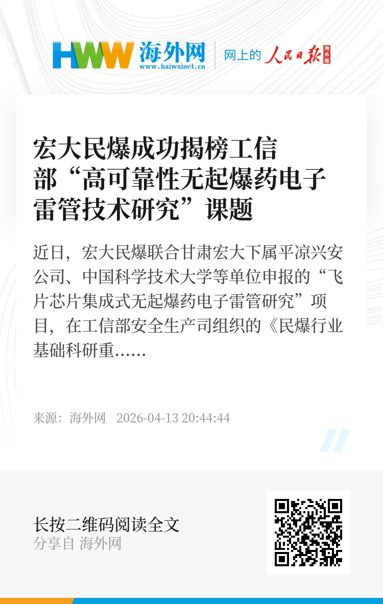 近日,宏大民爆联合甘肃宏大下属平凉兴安公司、中国科学技术大学等单位申报的“飞片芯片集成式无起爆药电子雷管研究”项目,在工信部安全生产司组织的《民爆行业基础科研重点研究方向指南(2025年版)》“揭榜挂帅”项目遴选中成功揭榜。