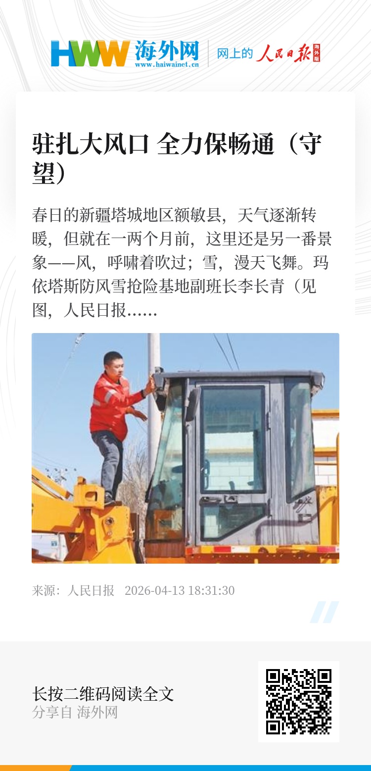 春日的新疆塔城地区额敏县,天气逐渐转暖,但就在一两个月前,这里还是另一番景象——风,呼啸着吹过;雪,漫天飞舞。玛依塔斯防风雪抢险基地副班长李长青(见图,人民日报记者尚嵘峥摄)的任务就是和十几名队员一起,整个冬季驻扎于此,负责省道201线和省道318线近百公里路段的除雪保畅通工作。