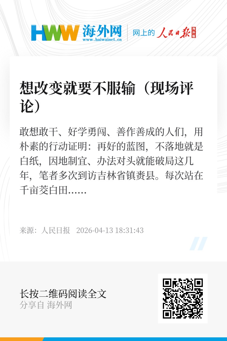 “十五五”规划纲要提出,“立足维护国家国防、粮食、生态、能源、产业安全推动东北全面振兴取得新突破”。从县域之变看区域之兴,不服输的骨气、敢闯敢试的勇气、久久为功的底气、实干担当的正气,都是宝贵“资源”。肯干、实干、创新干,就能步步登高,“取得新突破”。