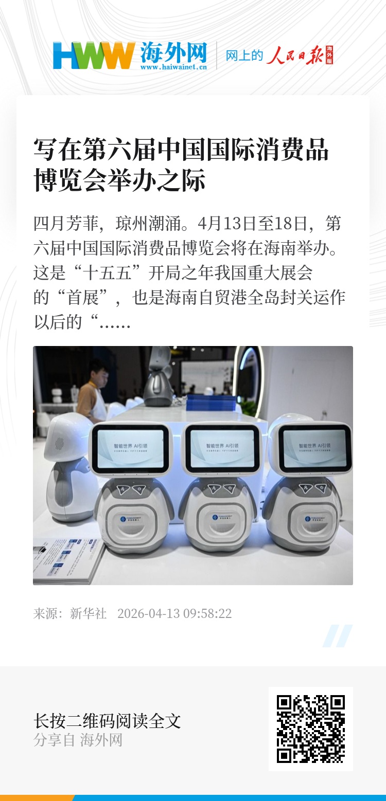 四月芳菲,琼州潮涌。4月13日至18日,第六届中国国际消费品博览会将在海南举办。这是“十五五”开局之年我国重大展会的“首展”,也是海南自贸港全岛封关运作以后的“首秀”。