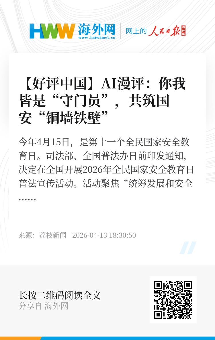 今年4月15日,是第十一个全民国家安全教育日。司法部、全国普法办日前印发通知,决定在全国开展2026年全民国家安全教育日普法宣传活动。活动聚焦“统筹发展和安全 护航‘十五五’新征程”主题,带动各地各部门开展特色主题活动,广泛运用漫画、短视频、微电影、微动漫等群众喜闻乐见的形式,深入解读总体国家安全观和国家安全相关法律法规。