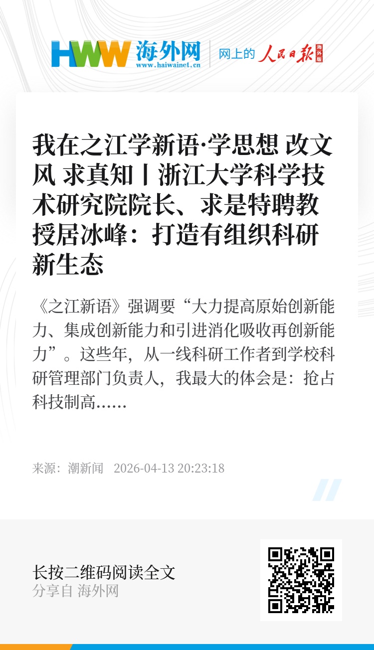 (作者为浙江大学科学技术研究院院长、求是特聘教授 居冰峰)