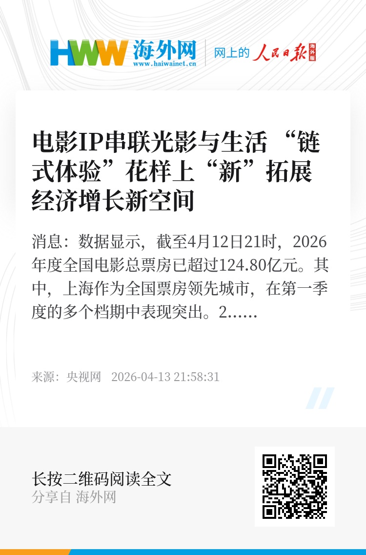 央视网消息:数据显示,截至4月12日21时,2026年度全国电影总票房已超过124.80亿元。其中,上海作为全国票房领先城市,在第一季度的多个档期中表现突出。2026年元旦档上海获得全国城市票房冠军,2026年春节档上海以1.97亿元的票房成绩蝉联全国城市票房榜首,连续5年登顶春节档城市票房冠军。