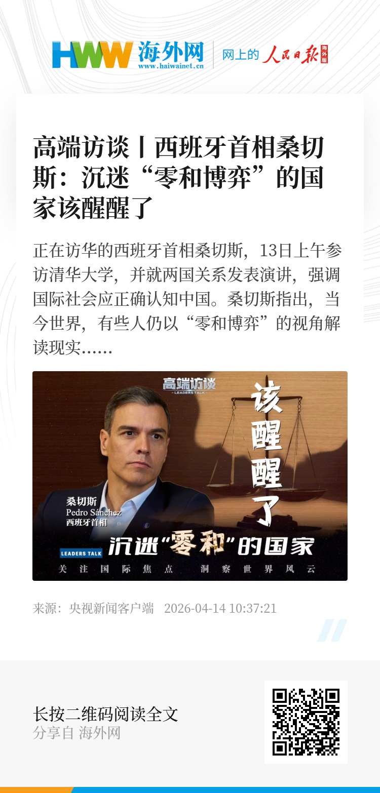 正在访华的西班牙首相桑切斯,13日上午参访清华大学,并就两国关系发表演讲,强调国际社会应正确认知中国。