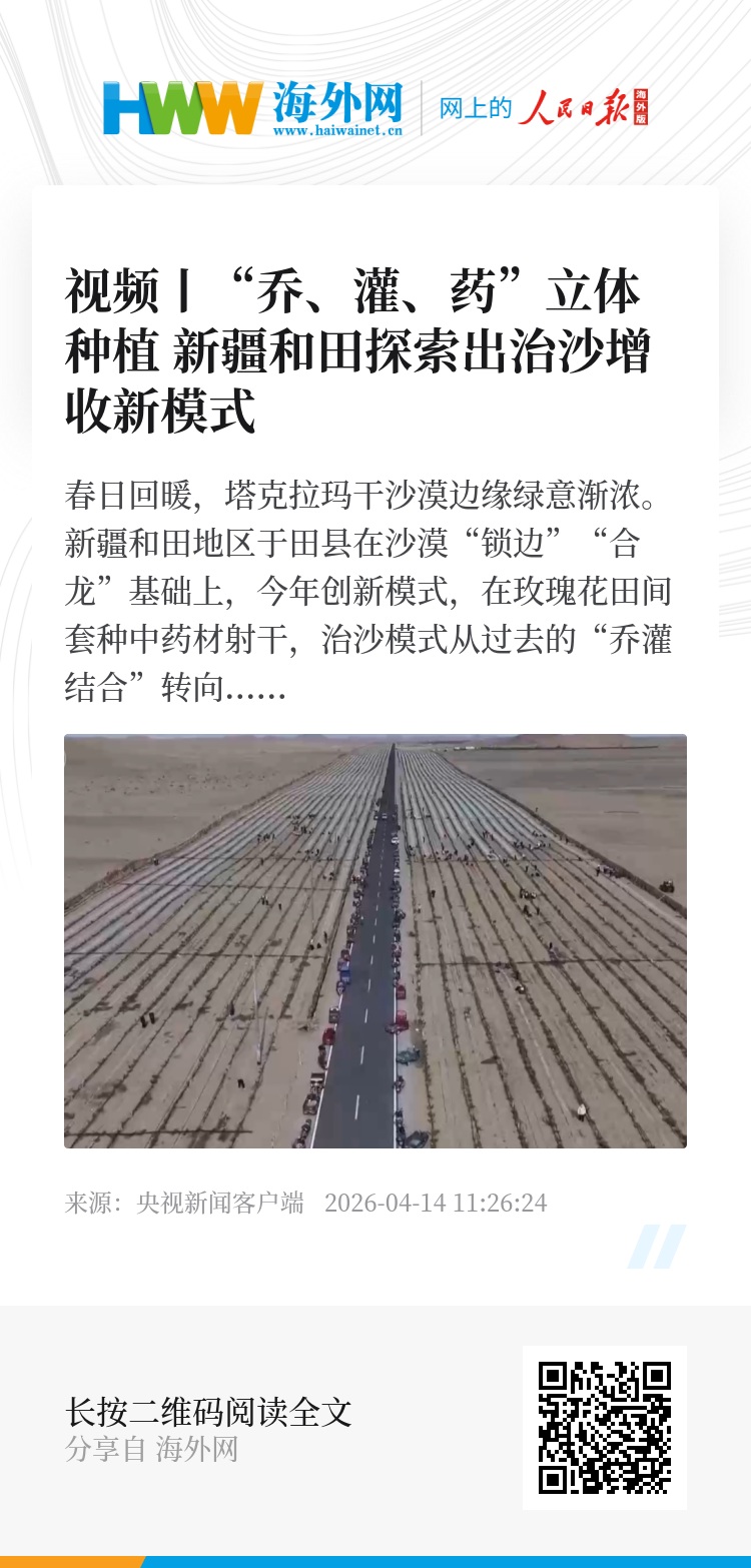 春日回暖,塔克拉玛干沙漠边缘绿意渐浓。新疆和田地区于田县在沙漠“锁边”“合龙”基础上,今年创新模式,在玫瑰花田间套种中药材射干,治沙模式从过去的“乔灌结合”转向“乔、灌、药”立体种植,走出一条生态与经济协同共进的新路子。