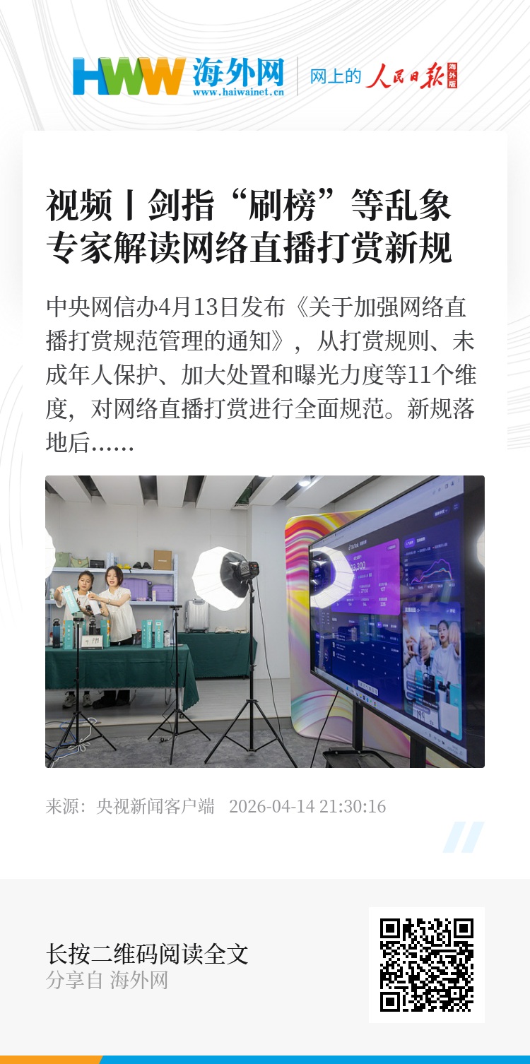 中央网信办4月13日发布《关于加强网络直播打赏规范管理的通知》,从打赏规则、未成年人保护、加大处置和曝光力度等11个维度,对网络直播打赏进行全面规范。新规落地后,我们平时刷直播时会感受到哪些变化?这些措施又能否让打赏这件事变得更透明、更安心呢?来看专家解读。