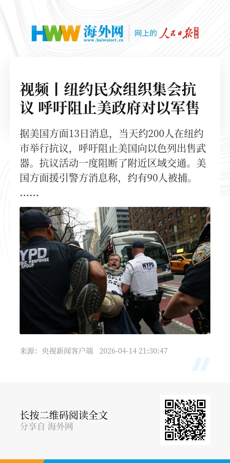 据美国方面13日消息,当天约200人在纽约市举行抗议,呼吁阻止美国向以色列出售武器。