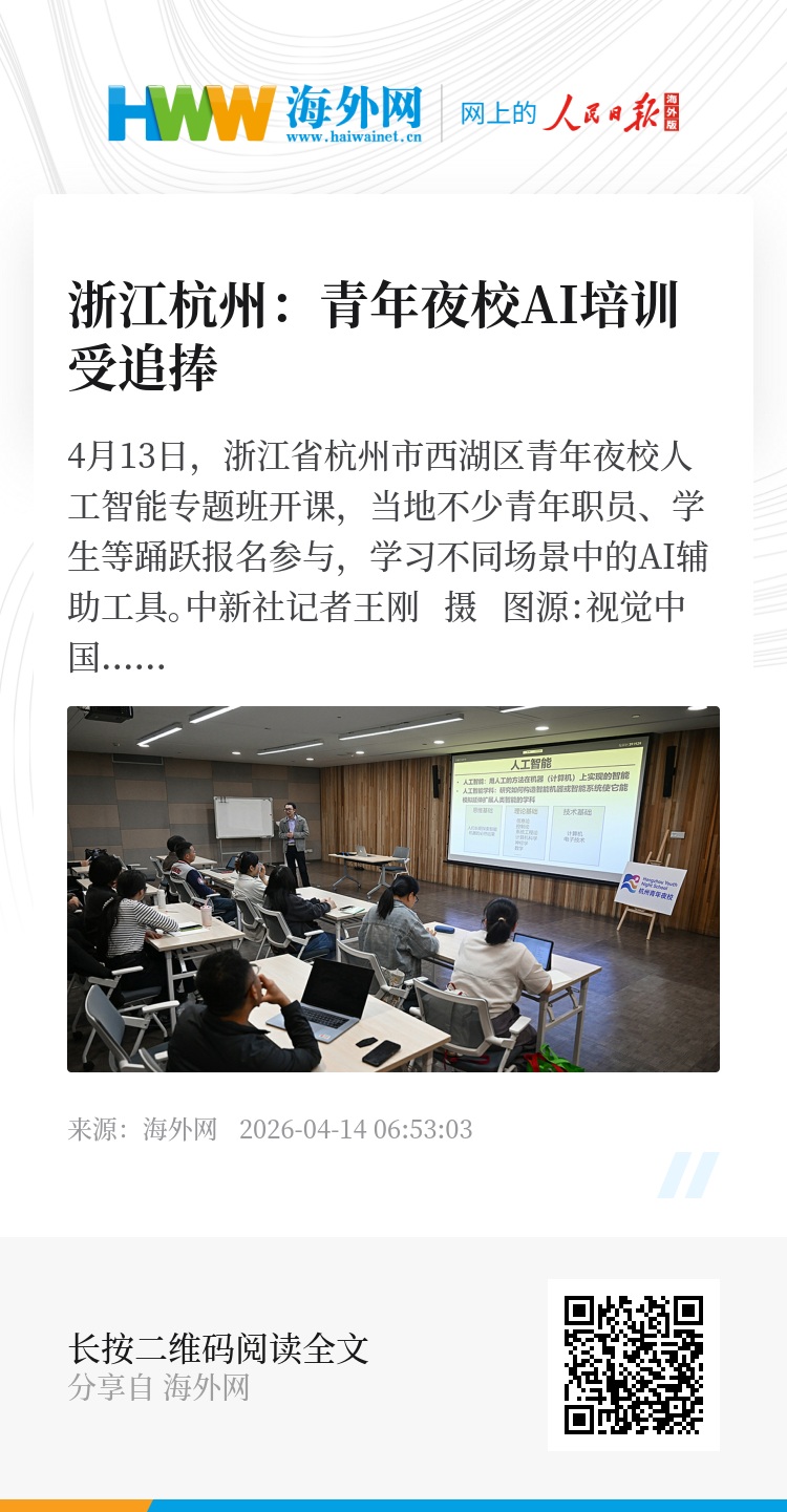 32945426,.浙江杭州:青年夜校AI培训受追捧,.2026-04-14 06:53:03,.204441,.张荣耀、卢思宇