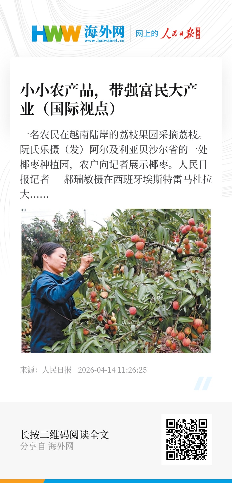 枝头的荔枝,通过多元开发变身“创汇”佳品;小小橄榄果,撑起全球1/4的橄榄种植规模;沙漠中的椰枣树,成为当地民众的“致富树”……近年来,越南、西班牙、阿尔及利亚等国立足本土资源禀赋,通过延伸产业链、打造品牌力、创新业态模式,推动特色农产品从“枝头”走向“端头”、从初级产品迈向高附加值商品。