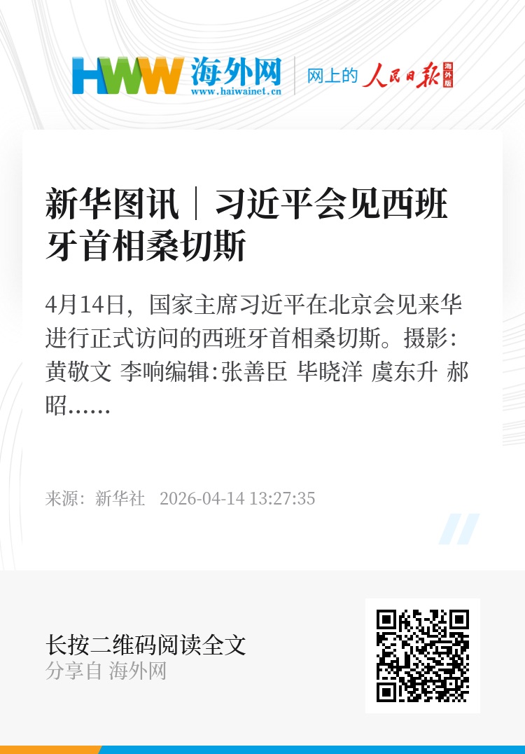 4月14日,国家主席习近平在北京会见来华进行正式访问的西班牙首相桑切斯。
