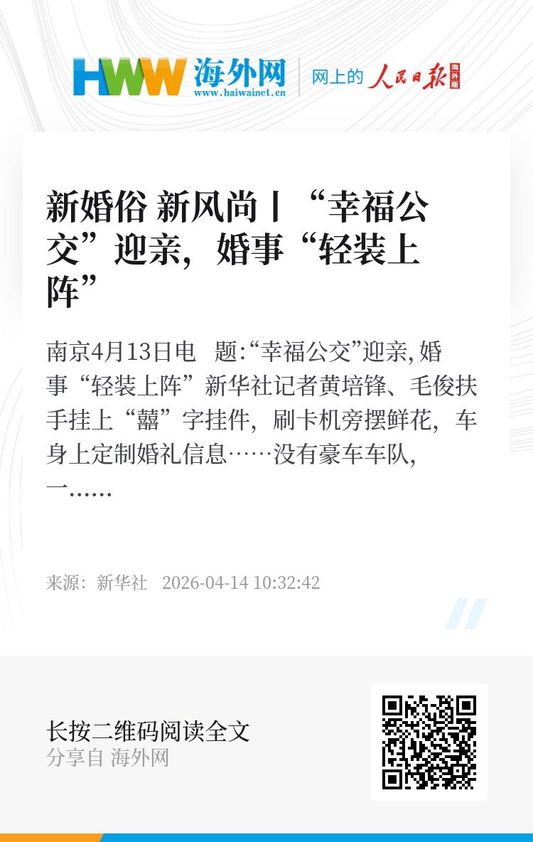 新华社南京4月13日电 题:“幸福公交”迎亲,婚事“轻装上阵”