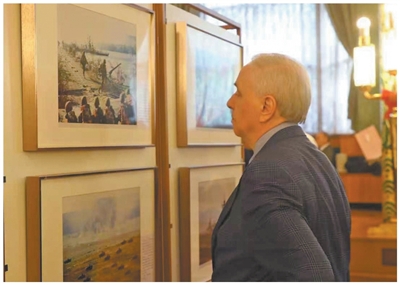 俄罗斯观众参观在俄罗斯首都莫斯科举行的“铭记历史 开创未来——纪念中国人民抗日战争暨世界反法西斯战争胜利80周年图片展”。