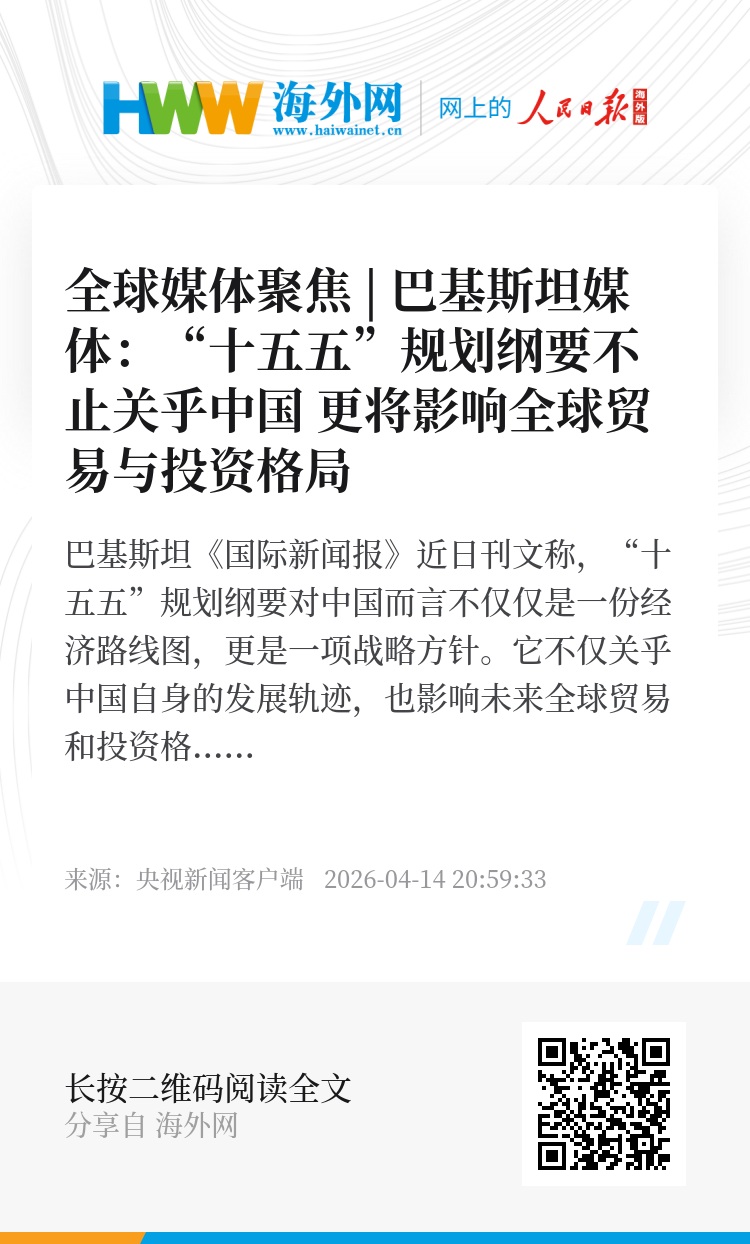 巴基斯坦《国际新闻报》近日刊文称,“十五五”规划纲要对中国而言不仅仅是一份经济路线图,更是一项战略方针。它不仅关乎中国自身的发展轨迹,也影响未来全球贸易和投资格局。