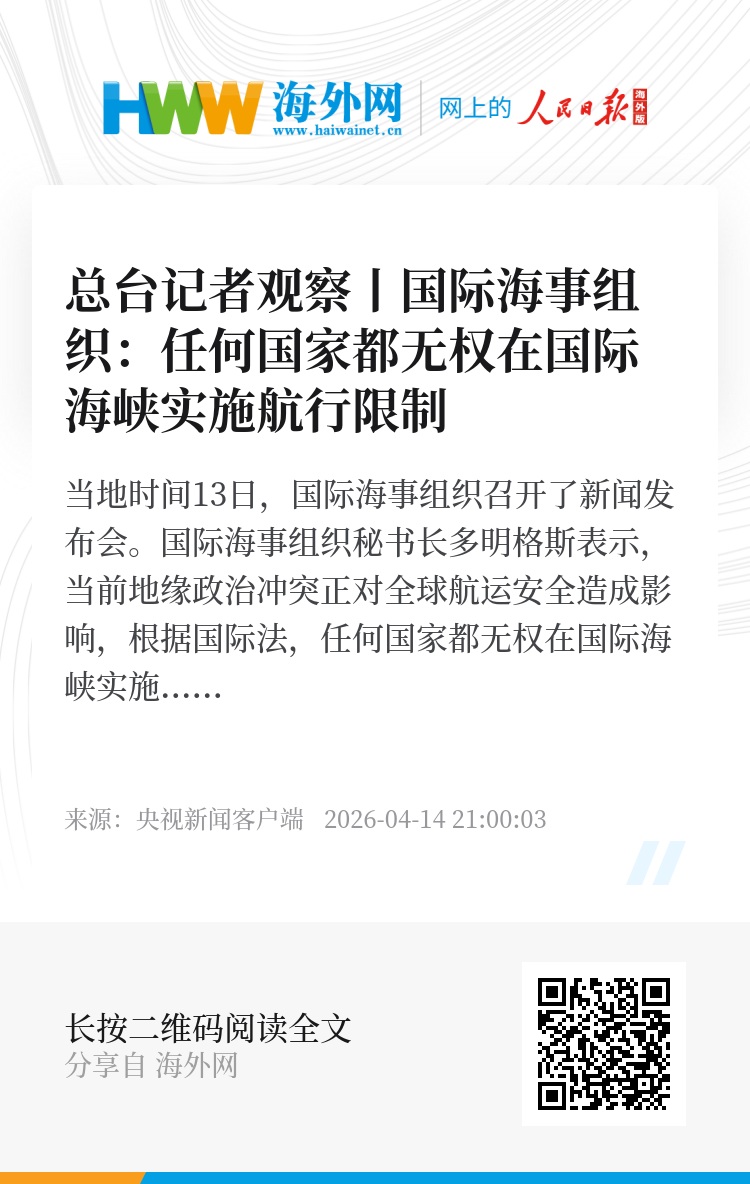 当地时间13日,国际海事组织召开了新闻发布会。国际海事组织秘书长多明格斯表示,当前地缘政治冲突正对全球航运安全造成影响,根据国际法,任何国家都无权在国际海峡实施航行限制。