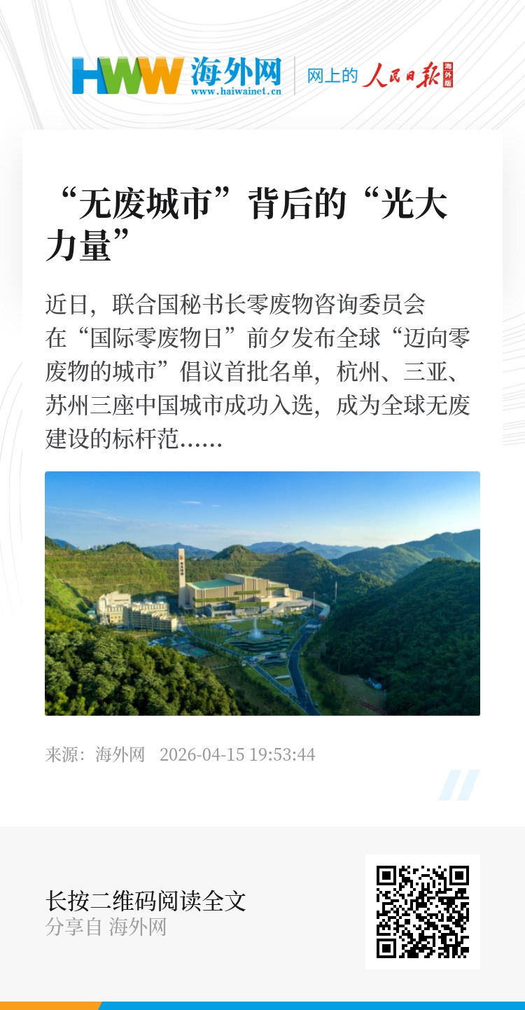 从化解“邻避”困境到实现“邻利”共赢,从单纯的末端处置到全链条价值创造,从功能性环保设施到开放式城市客厅,光大环境的环保实践,正是无废城市建设的微观缩影。如今,光大环境业务已覆盖全国24个省份、220多个区县市,将杭州、三亚、苏州的项目成熟经验,因地制宜复制推广到不同类型的城市,让无废理念在更多地方落地生根。这既是央企的使命担当,更是中国对全球可持续发展承诺的务实作答。