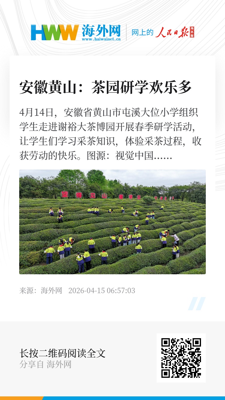 32945722,.安徽黄山:茶园研学欢乐多,.2026-04-15 06:57:03,.204441,.张荣耀、卢思宇