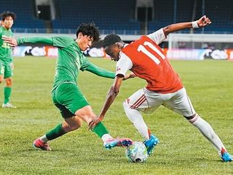 阿森纳U15队和浙江职业足球俱乐部U15队在比赛中。