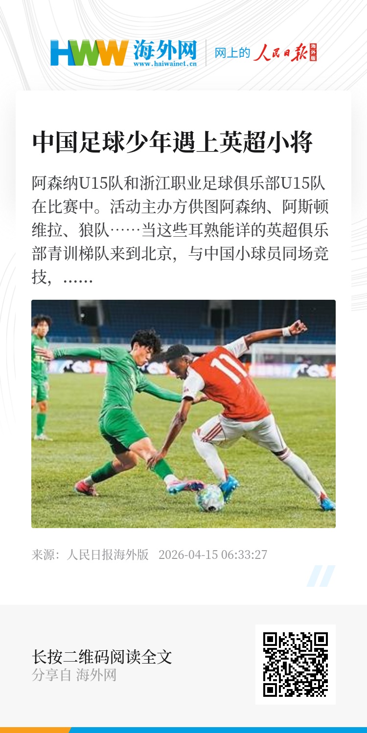 “我们的目标并不是把英超的模式生搬硬套到中国,而是因地制宜,根据中国的实际情况进行调整,推动中国足球发展。未来希望有中国优胜的青少年队伍受邀到英国比赛。”李嘉铭表示,英超将持续加强与中国足球的合作,一方面继续引进高水平青少年赛事,另一方面也将持续推进教练培训和职业序列交流。(本报记者 刘峣)