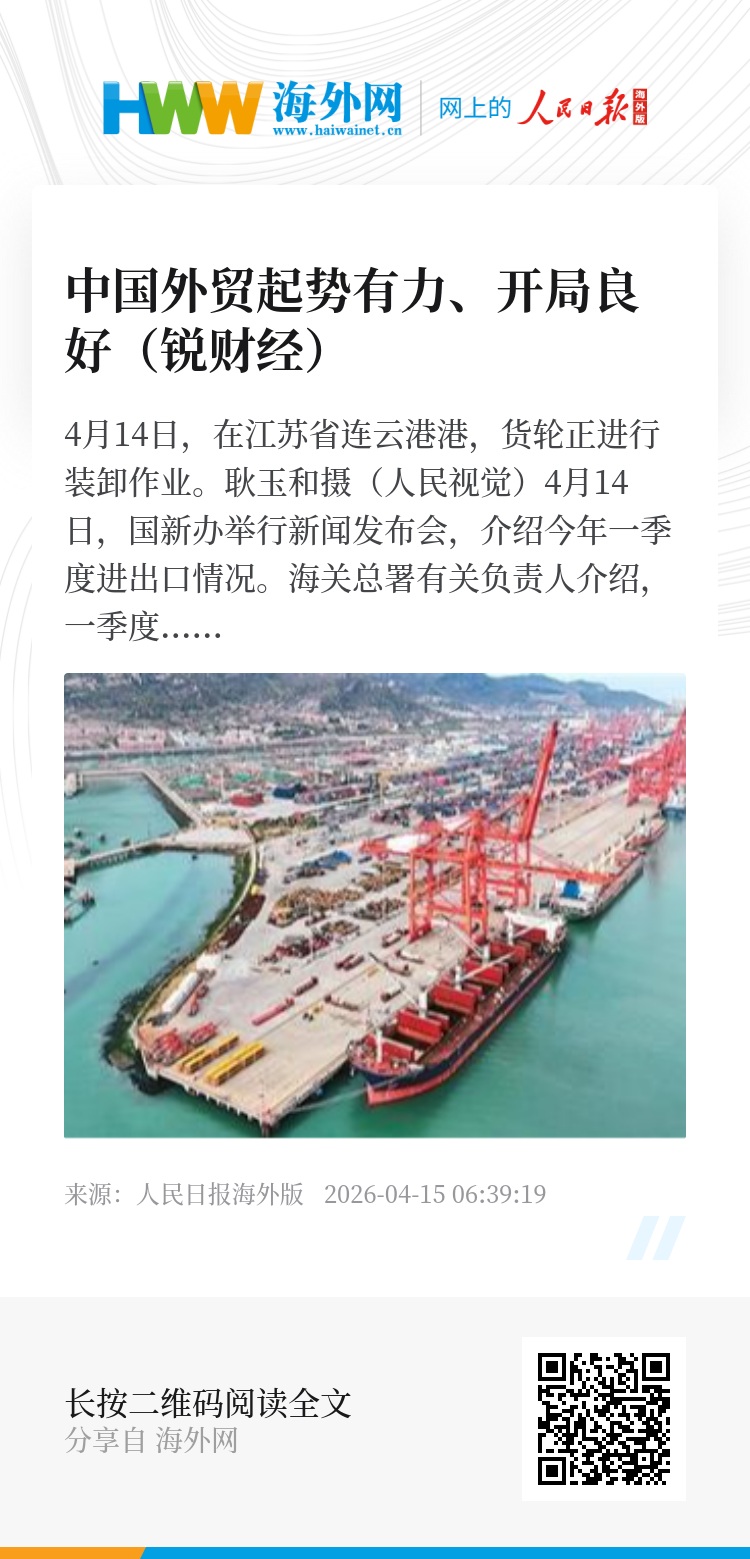 推动跨境电商加海外仓模式扩容升级,促进外资扩大本地化生产,保障海南自贸港平稳有序运行……今年以来,更加积极有为的宏观政策持续发力,中国外贸活力足、动能强。