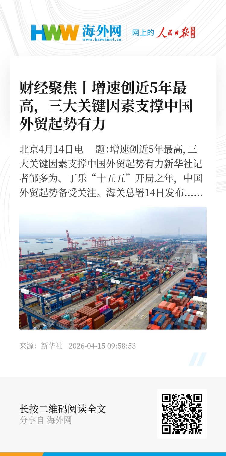 新华社北京4月14日电 题:增速创近5年最高,三大关键因素支撑中国外贸起势有力