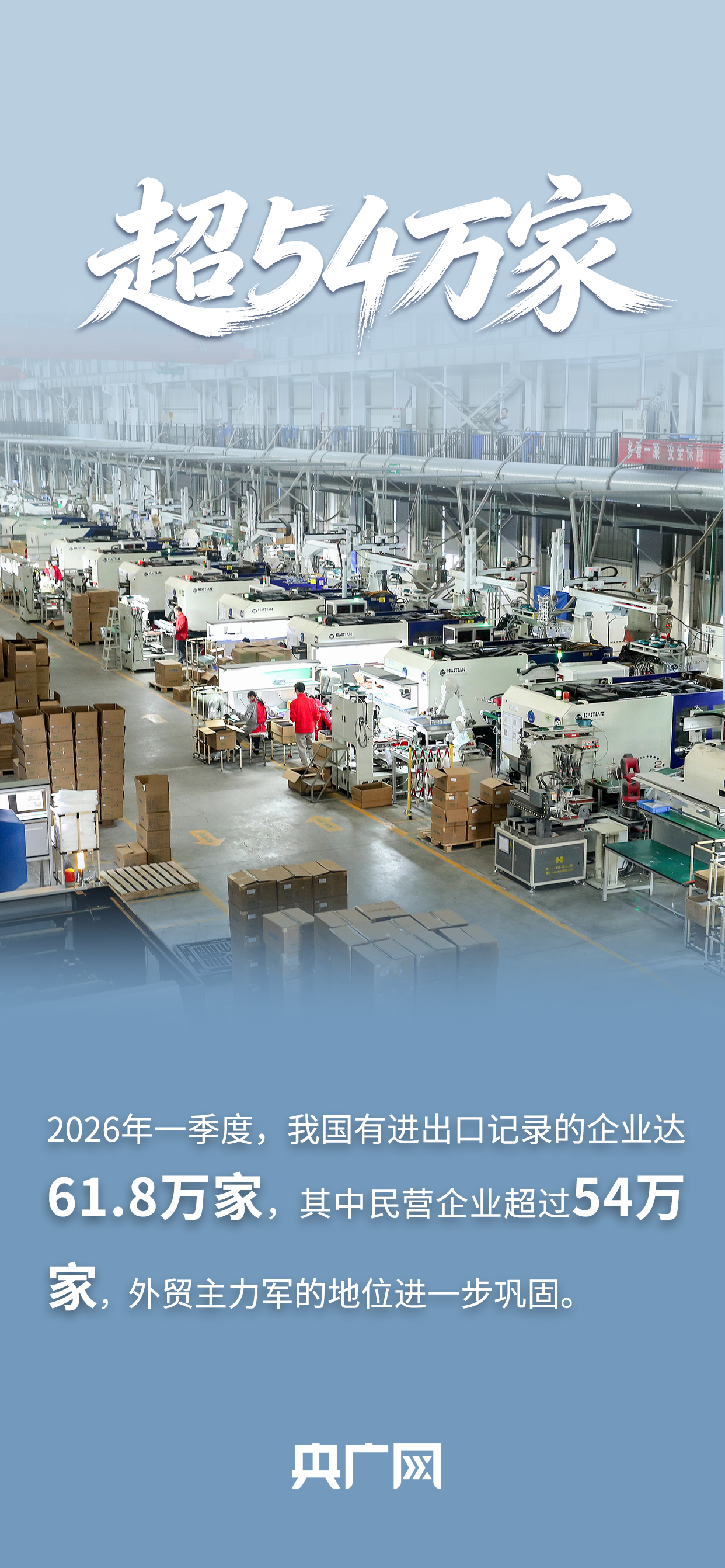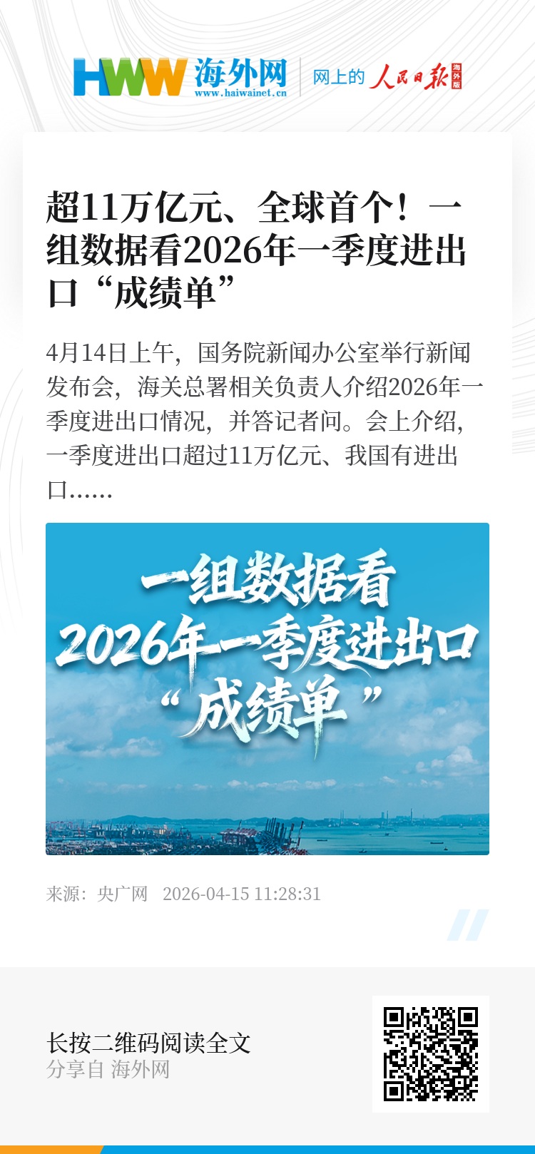 4月14日上午,国务院新闻办公室举行新闻发布会,海关总署相关负责人介绍2026年一季度进出口情况,并答记者问。会上介绍,一季度进出口超过11万亿元、我国有进出口记录的民营企业超过54万家、海关创新支持“TIR+跨境电商”物流模式……戳图!一组数据看2026年一季度进出口“成绩单”。