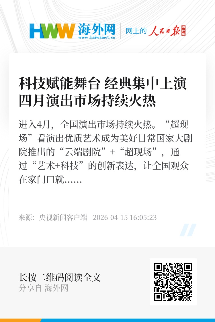 国家大剧院推出的“云端剧院”+“超现场”,通过“艺术+科技”的创新表达,让全国观众在家门口就能看到精彩演出。