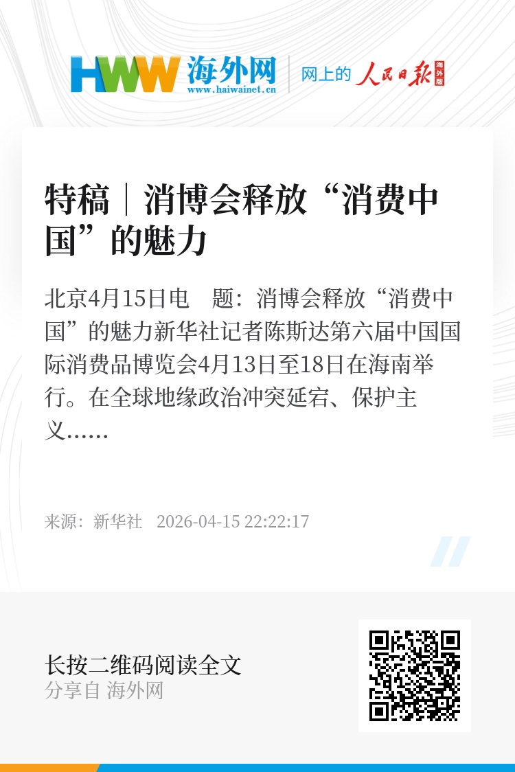 第六届中国国际消费品博览会4月13日至18日在海南举行。在全球地缘政治冲突延宕、保护主义抬头、经济复苏乏力的背景下,消博会成为观察中国消费活力与开放决心的重要窗口。海外人士认为,超大规模市场的韧性,高水平对外开放的坚定姿态,与世界共享发展红利、共拓增长空间的愿景,正是“消费中国”的魅力所在。