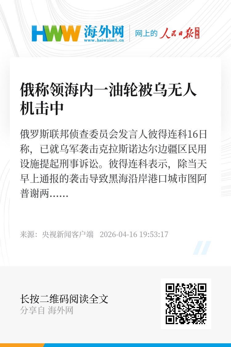 俄罗斯联邦侦查委员会发言人彼得连科16日称,已就乌军袭击克拉斯诺达尔边疆区民用设施提起刑事诉讼。彼得连科表示,除当天早上通报的袭击导致黑海沿岸港口城市图阿普谢两人死亡、多栋民宅及幼儿园受损外,俄领海内一艘悬挂利比里亚国旗的油轮也被乌军无人机击中,土耳其籍船长受伤送医。