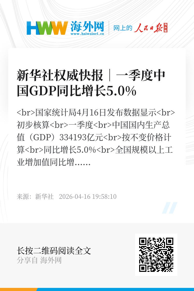 国家统计局4月16日发布数据显示