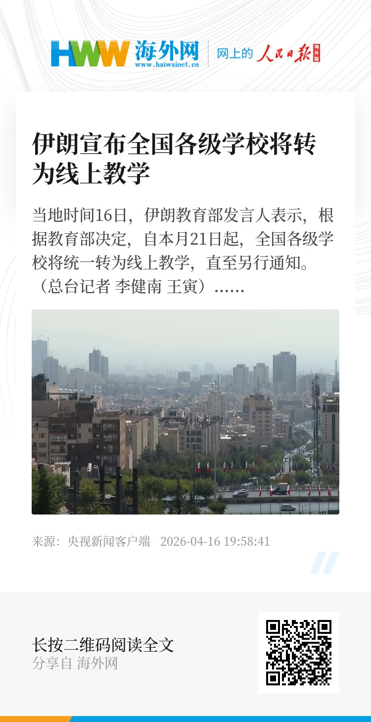 当地时间16日,伊朗教育部发言人表示,根据教育部决定,自本月21日起,全国各级学校将统一转为线上教学,直至另行通知。(总台记者 李健南 王寅)