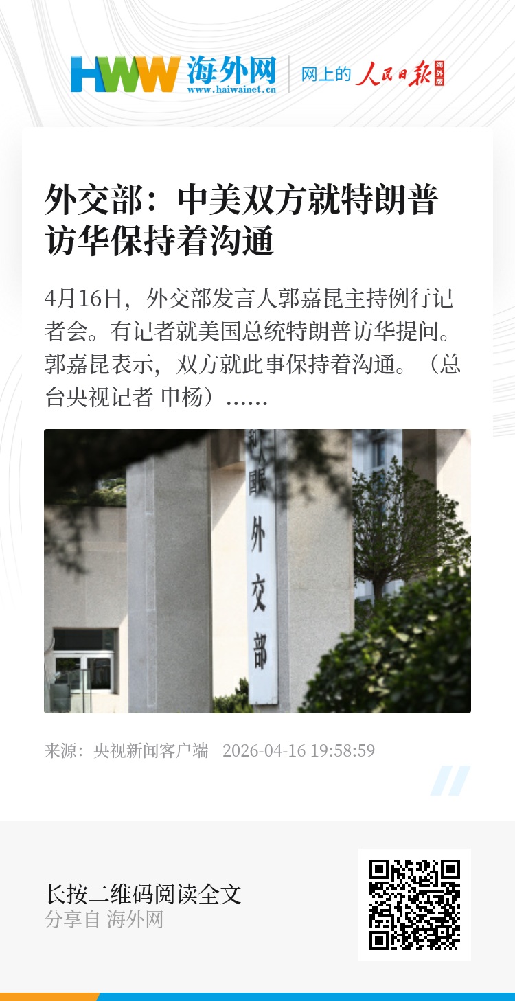 4月16日,外交部发言人郭嘉昆主持例行记者会。有记者就美国总统特朗普访华提问。
