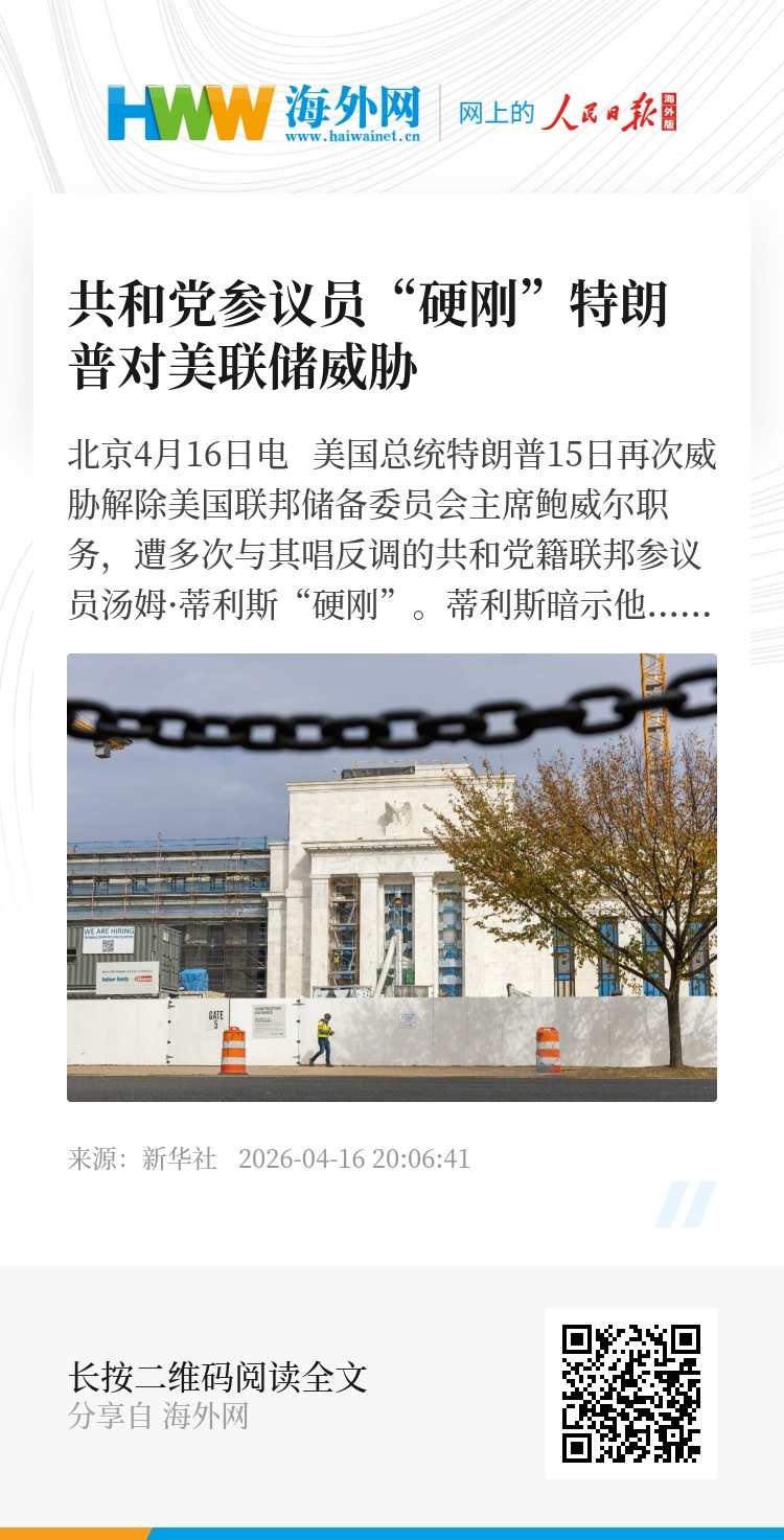 新华社北京4月16日电 美国总统特朗普15日再次威胁解除美国联邦储备委员会主席鲍威尔职务,遭多次与其唱反调的共和党籍联邦参议员汤姆·蒂利斯“硬刚”。蒂利斯暗示他可能动用手中筹码阻挠美联储新主席乃至新司法部长就任。