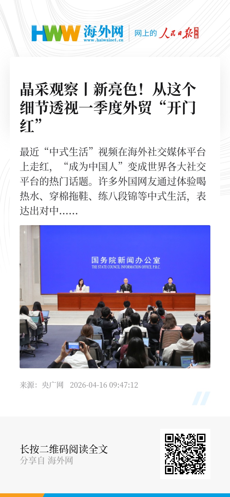 国新办举行新闻发布会,介绍2026年一季度进出口情况