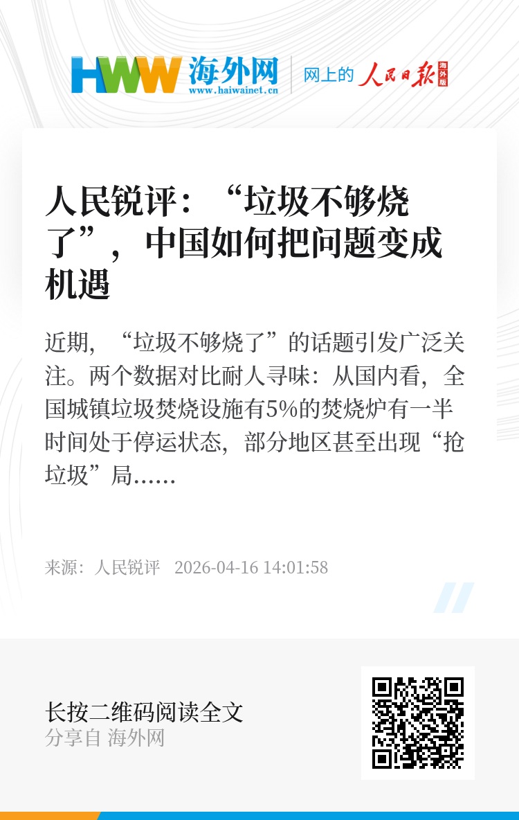 近期,“垃圾不够烧了”的话题引发广泛关注。两个数据对比耐人寻味:从国内看,全国城镇垃圾焚烧设施有5%的焚烧炉有一半时间处于停运状态,部分地区甚至出现“抢垃圾”局面;从国际看,我国垃圾焚烧日处理能力占全球的比例已达约60%,远高于欧美日总和。现实反差,隐藏着中国的发展密码。