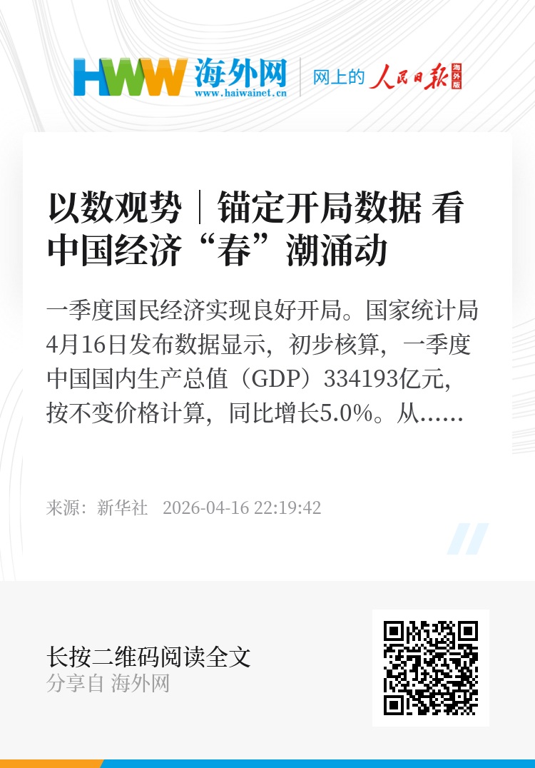 从首季成绩单看“十五五”开局之年中国经济走势,高质量发展向新向优,发展韧性和活力进一步彰显。
