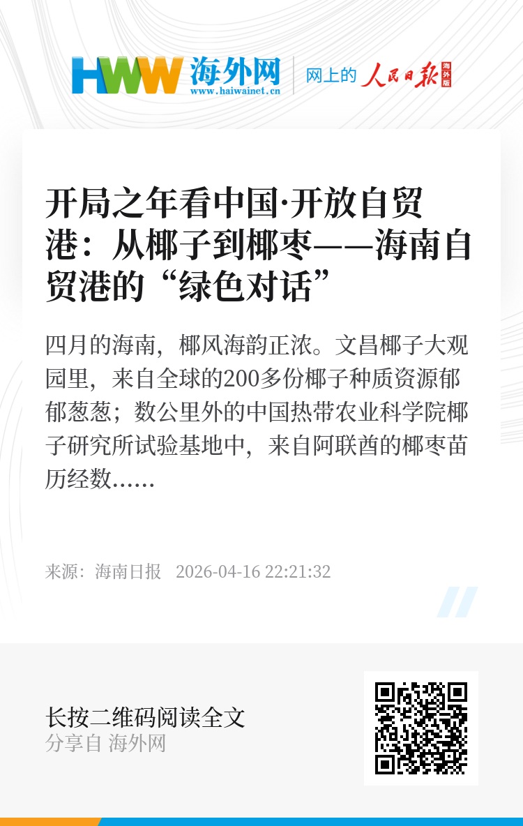 椰子大观园与椰枣基地,一个是面向公众的科普窗口,一个是聚焦前沿的科研阵地,却共享同一个科研“大脑”。从椰子到椰枣,从种质资源到国际协作,恰是海南自贸港以科技促开放、以合作谋共赢的鲜活样本。(海南日报全媒体记者蔡曼良)