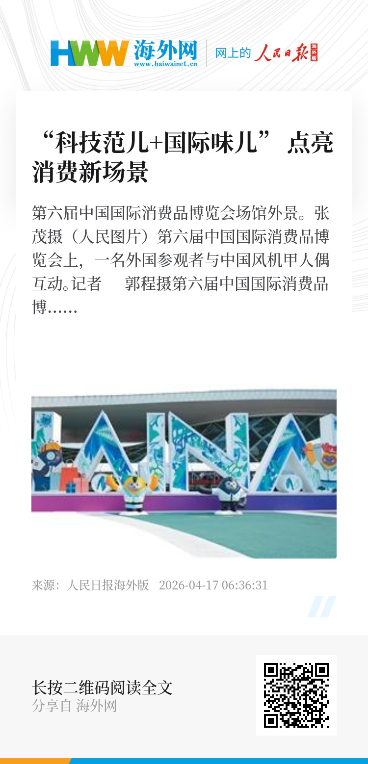 展会期间,以AI(人工智能)为核心的前沿科技展品全面出圈,从智能穿戴、智慧家居到康养医疗、数字服务,AI深度赋能的消费新场景成为网友们热议的焦点。有网友在评论区留言:“‘科技范儿+国际味儿’点亮消费新场景,让我们一起为本届消博会点赞!”