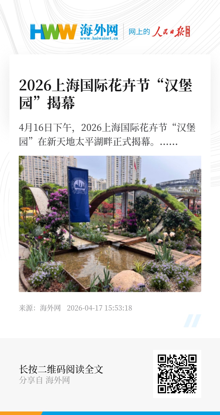 4月16日下午,2026上海国际花卉节“汉堡园”在新天地太平湖畔正式揭幕。正值上海与德国汉堡缔结友好城市关系40周年,汉堡市议长卡罗拉·费特率团专程访沪,共同见证这一时刻。