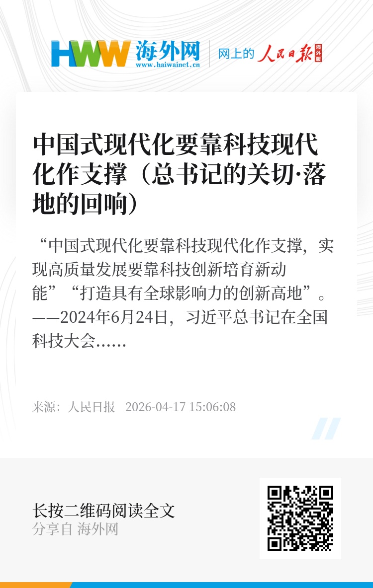 “推进中国式现代化,科学技术要打头阵,科技创新是必由之路。”加快实现高水平科技自立自强,全速发动科技创新引擎,必将驱动中国号巨轮破浪前行。(记者 卢涛 吕绍刚)