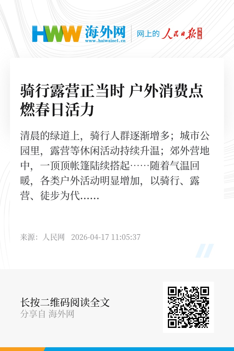 清晨的绿道上,骑行人群逐渐增多;城市公园里,露营等休闲活动持续升温;郊外营地中,一顶顶帐篷陆续搭起……随着气温回暖,各类户外活动明显增加,以骑行、露营、徒步为代表的户外生活方式加快兴起,成为拉动春日消费的重要场景。