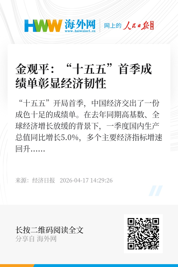 “十五五”开局首季,中国经济交出了一份成色十足的成绩单。在去年同期高基数、全球经济增长放缓的背景下,一季度国内生产总值同比增长5.0%,多个主要经济指标增速回升,彰显了大国经济的韧性与活力,也为世界经济注入宝贵的稳定性和确定性。