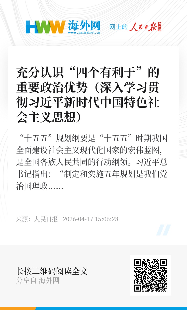 “十五五”规划纲要是“十五五”时期我国全面建设社会主义现代化国家的宏伟蓝图,是全国各族人民共同的行动纲领。习近平总书记指出:“制定和实施五年规划是我们党治国理政一条重要经验,是中国特色社会主义制度一个重要政治优势,有利于实现党的领导,有利于集中力量办大事,有利于前瞻性把握战略问题,有利于保持事业连续性。”“四个有利于”密切相连、相互贯通、有机统一,既从不同维度回答了经济社会发展的重大问题,又揭示了中国之治的重要密码;既体现了中国特色社会主义制度的本质属性,又遵循了国家治理现代化的内在规律;既坚持党的全面领导,又注重对治理效能、战略方法与发展方式的科学把握。推动“十五五”规划纲要各项目标任务落实落地,要深刻认识并充分用好“四个有利于”的重要政治优势,把中国式现代化宏伟蓝图一步步变为现实。