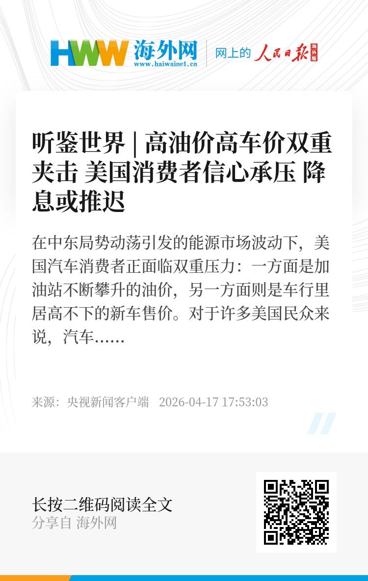 在中东局势动荡引发的能源市场波动下,美国汽车消费者正面临双重压力:一方面是加油站不断攀升的油价,另一方面则是车行里居高不下的新车售价。对于许多美国民众来说,汽车曾经象征着自由与梦想,而现在,它正成为一项日益沉重的财务负担。与此同时,美联储官员警告称,高企的通胀可能导致今年内无法降息。