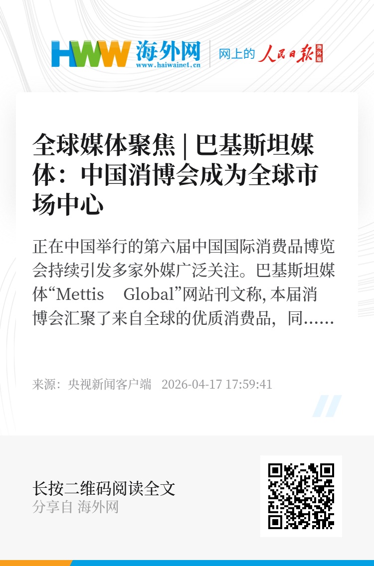 文章最后援引专家的话说,中国的消费趋势正在发生转变,对更智能、更绿色、更优质产品的需求日益增长。消博会在连接全球供应商与中国不断扩大的消费群体方面正发挥着重要作用。