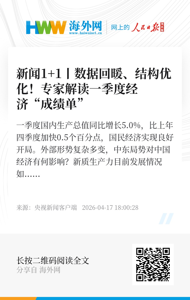 一季度国内生产总值同比增长5.0%,比上年四季度加快0.5个百分点,国民经济实现良好开局。外部形势复杂多变,中东局势对中国经济有何影响?新质生产力目前发展情况如何?全年预期增长目标又能否实现?